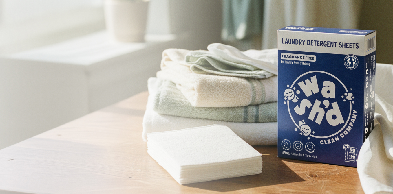 Detergent is up to 90% water. Wash'd removed the water, harsh chemicals, plastic, bulk & mess from laundry.